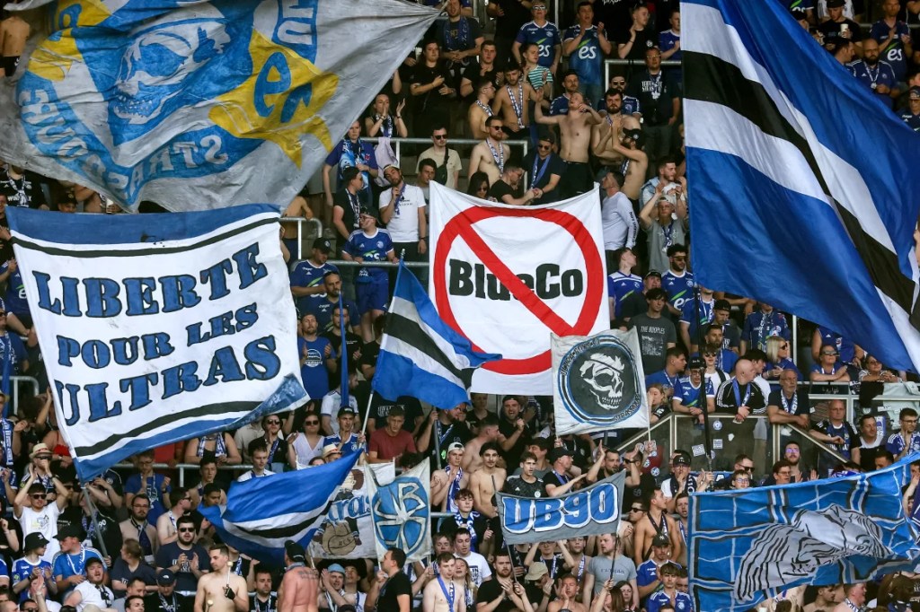 Two main ultra groups are currently driving the bulk of the anti-BlueCo movement in Strasbourg, Ultra Boys 90 and Kop Ciel et Blanc. Their demonstrations have not taken a single form; instead there’s been a variety of banners, silenced stands and open letters to the group to show their dissatisfaction.
